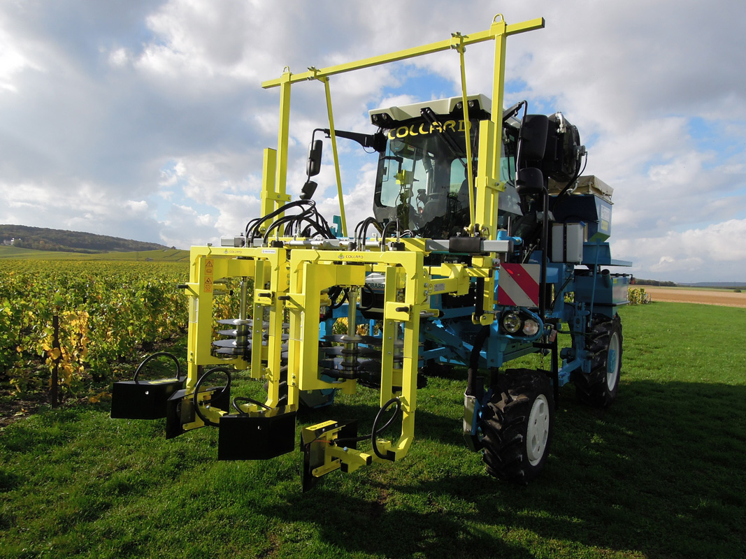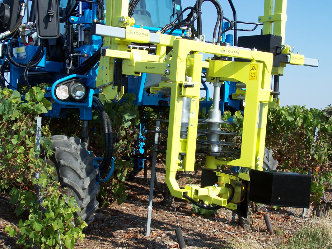 The COLLARD Prepruner range 1 row (PCE 3000) or 2 rows (PCE 3200) is specially designed for straddle tractors or harvesting machines. Our Prepruners fit on the front total raising frame of your Vine Trimmer. We define the vertical height of our machines according to your needs